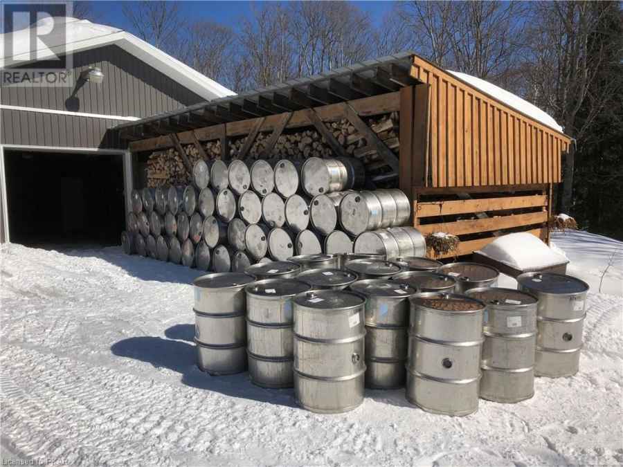Turnkey 15,000+ tap maple syrup operation with a house, west of Trout Creek, Ontario, ready to earn income. 195 acres of maple dominated forest around the 2600 sf sugarhouse with a 3 acre pond and a cool hunting camp complete the opportunity. An additional 4,000 taps on adjacent leased Crown Land (extendable Land Use Permit 2020-2030) can be added to the 15,000 taps, with all required materials and tubing on-site to install. The 1300 s.f. house has contemporary finishes and hardwood floors on the main floor. It has 4 bedrooms, 2 bathrooms and fully finished walkout lower level with an open concept living area. The maple syrup operation includes 3 pump stations with 120/220 V electricity, an 8-post H2O High Brix (35 degrees) Reverse Osmosis machine and a 6' x 16' High Brix H2O Evaporator (installed for the 2023 harvest) capable of producing 3 barrels per hour. A central vaccum system (4 vaccum pumps with total capacity of 37.5 hP), underground vacuum and transfer lines and a H2O vaccum monitoring system are included in the setup. HST applicable on sale price. Certified Organic through ECOCERT. If you have the ambition to grow your maple syrup business, this is a golden opportunity for a family or existing producer. Plan on 2-3 hours for a showing of the house and premises, sugarhouse, hunting camp and bush. Contact your favourite realtor for a showing soon.