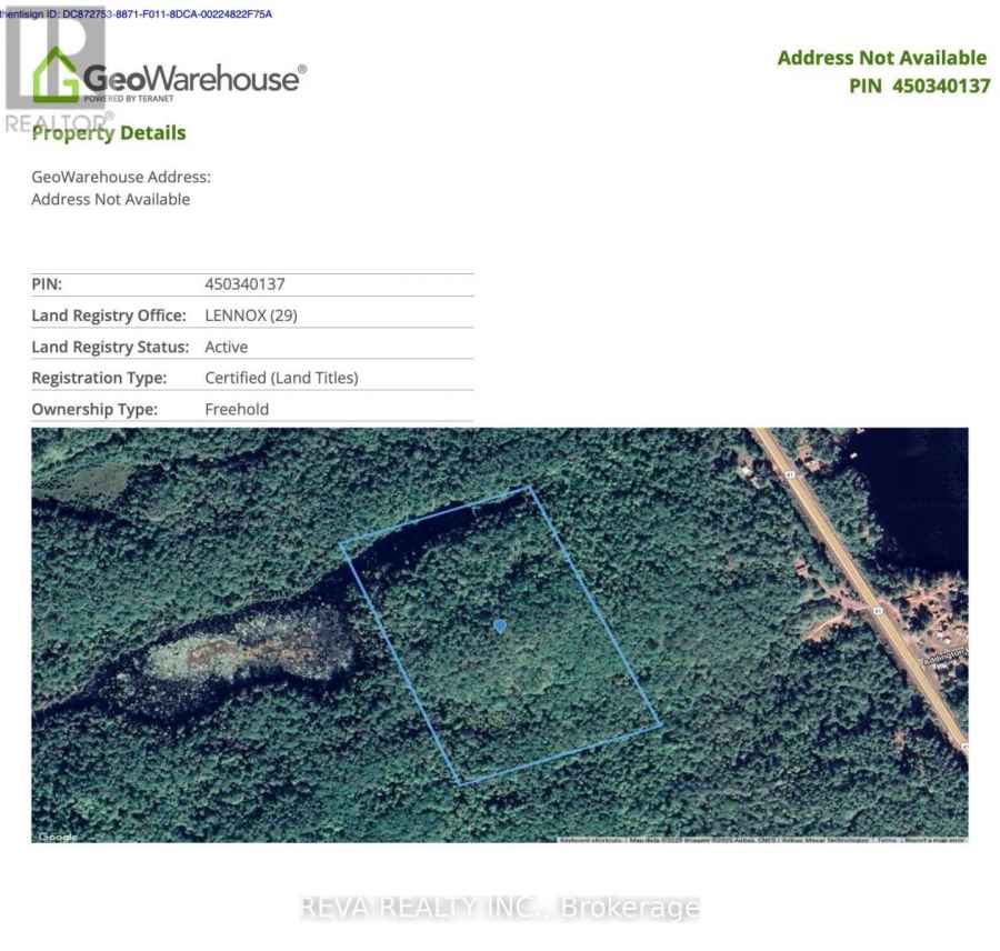 Near the north of Mazinaw Lake on Highway 41 lies about 25 acres of raw forested land waiting for a NEW Owner. Access by deeded Right of way since 1989. An investment, hunting lands, fishing camp, other recreational, ..... the buyer has options. Zoning is Limited Service Residential. Wild animals are evident, a small ancient lake is located on north-west part of property. Geowarehouse says 24.968 acres, Tax bill says 25 acres. Within 1 km of Brown's Campground & Addington Road 5 and the North Mazinaw. One hour to Highway 41 at Napanee, 35 minutes north of Highway 41 and Highway 7. No Survey, but Seller has Deed including ROW. All showings to be with a Realtor, please no trespassing.
